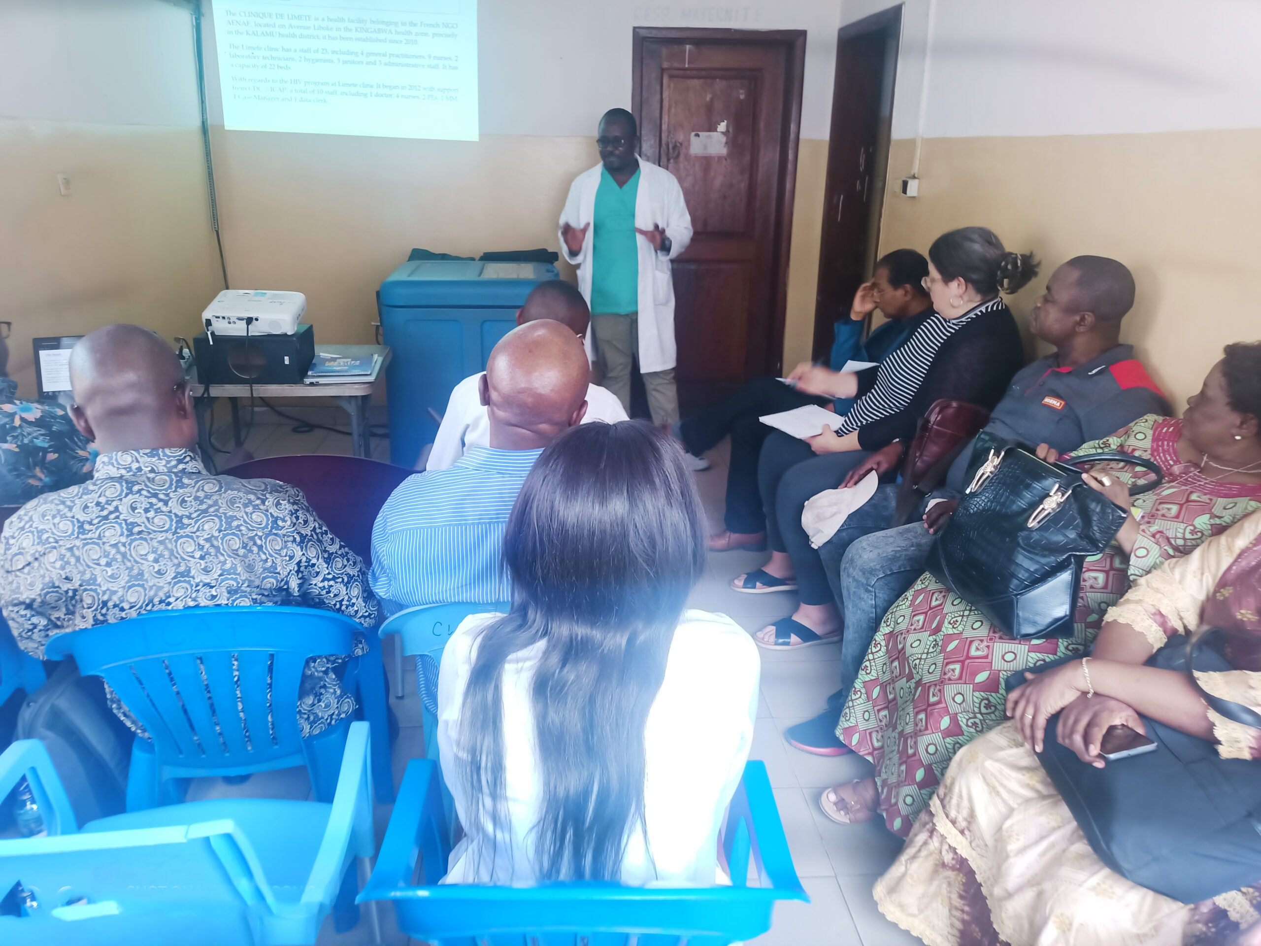 La délégation de PEPFAR composée de Madame Nora, Monsieur Shaul, Docteur Marie Louise Batumbula et Docteur Henri Longuma est descendue sur terrain, le 13 septembre 2023, pour travailler avec les structures,CM Esperodi (ZS Masina I) et Clinique Limete (ZS Kingabwa), sur le rapportage et la certification des données. Ces deux structures ont été sélectionnées parmi les 6 zones de santé appuyées par le projet Lisanga dans la ville-province de Kinshasa. Au cours de différentes interventions, l’accent a été mis sur l’organisation et les modalités des tests basés sur les réseaux dans les sites. Le cascade de l’index testing doit être complète, en commençant par le nombre de personnes testées positives jusqu’au nombre de celles qui sont soumises à l’ARV, après élicitation. Ensuite, il s’est tenu au bureau du principal investigateur, le professeur Jack Kokolomami, une réunion de restitution au cours de laquelle il y a eu des remarques et suggestions des membres de CDC à l’intention des prestataires. Les images ci-dessous montrent quelques activités menées lors de cette visite.